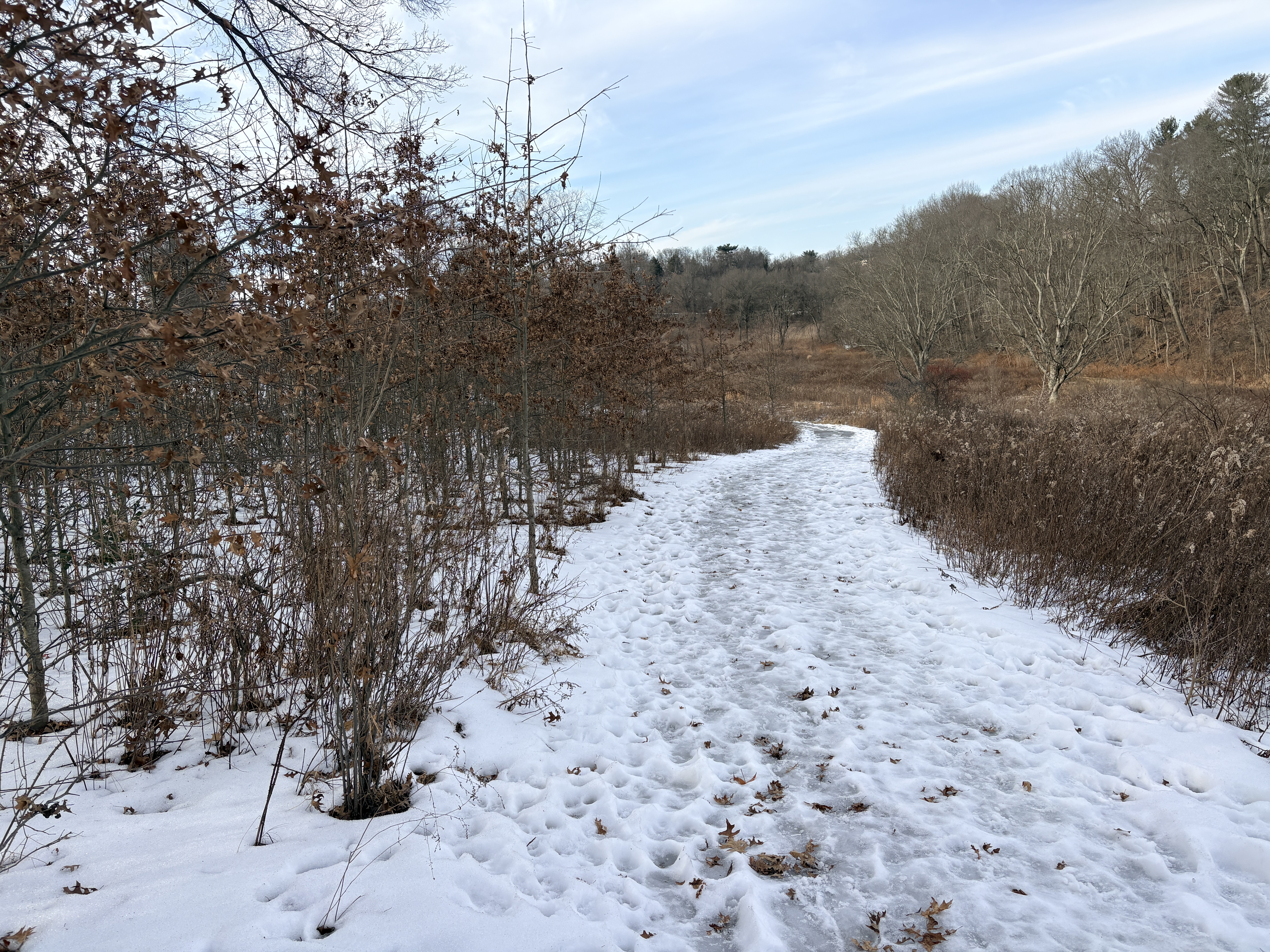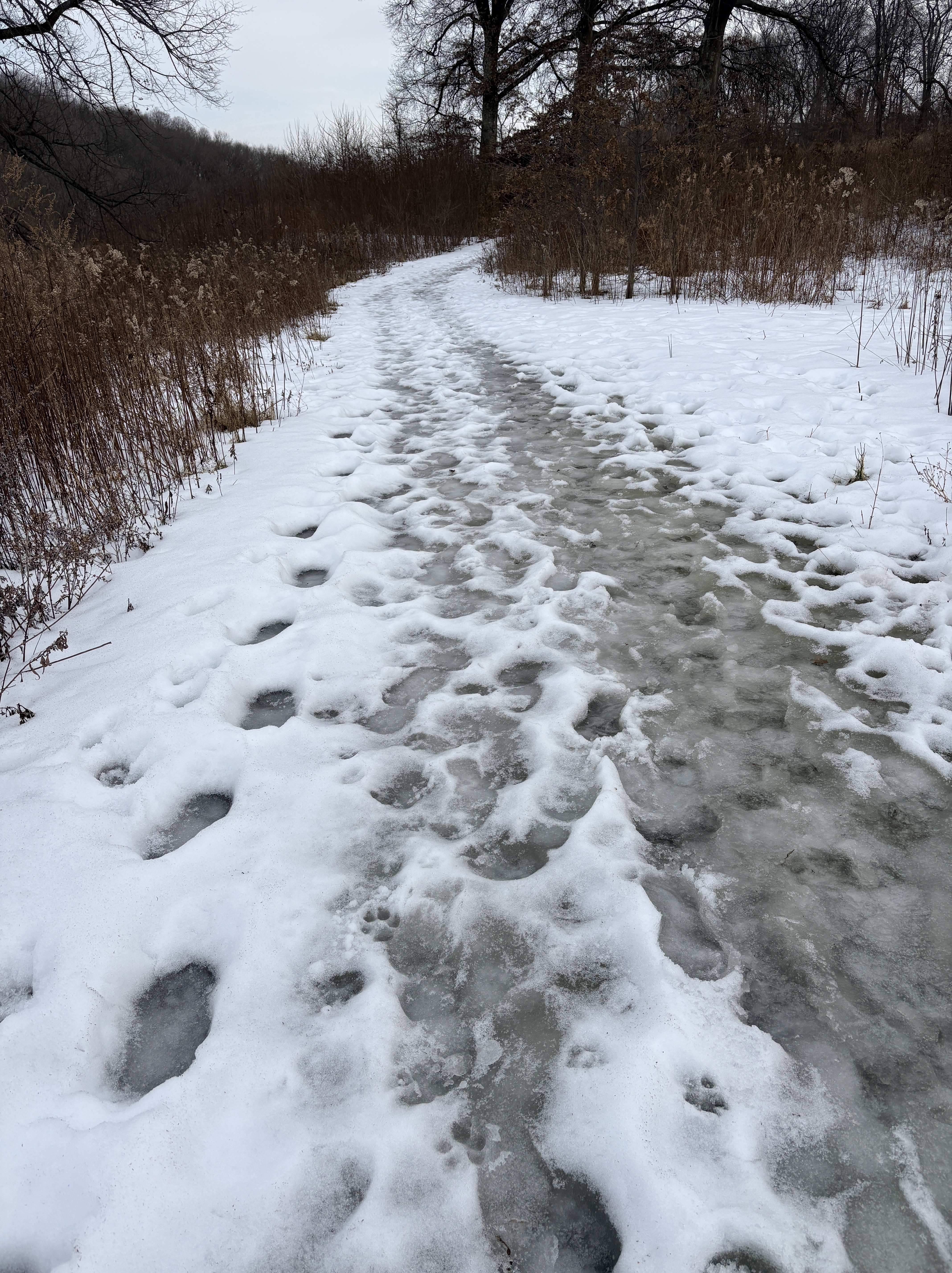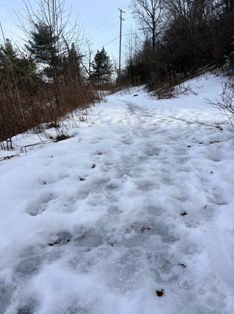 So I pressed on. I slid a little once or twice, but I was careful. It wasn’t like that the whole way. There were clear parts.