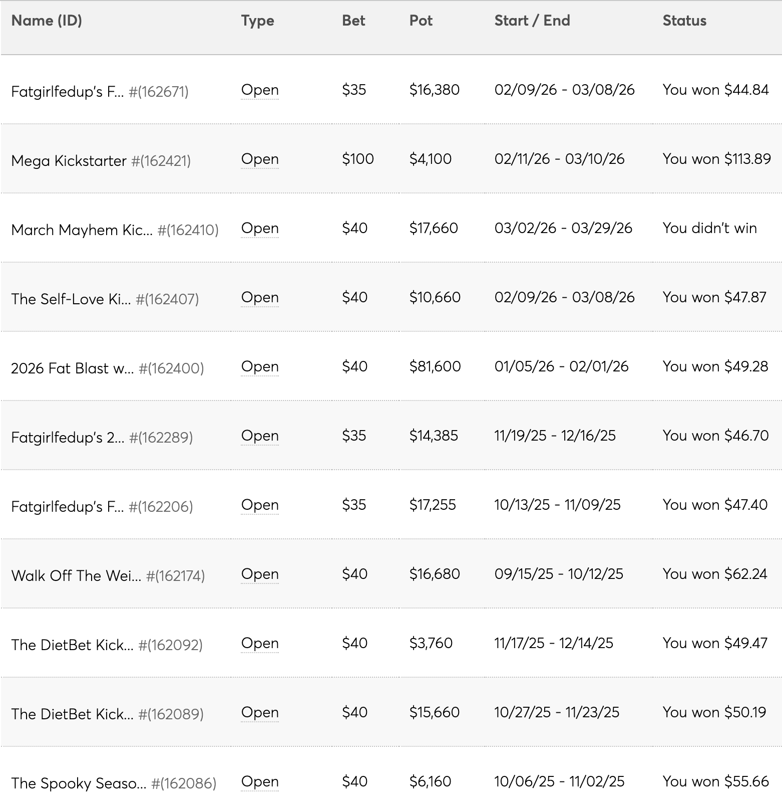 What could I do but lose graciously? I thought of it as rebalancing the sheet of me taking other people’s money these past 10 months. Can’t win ’em all.